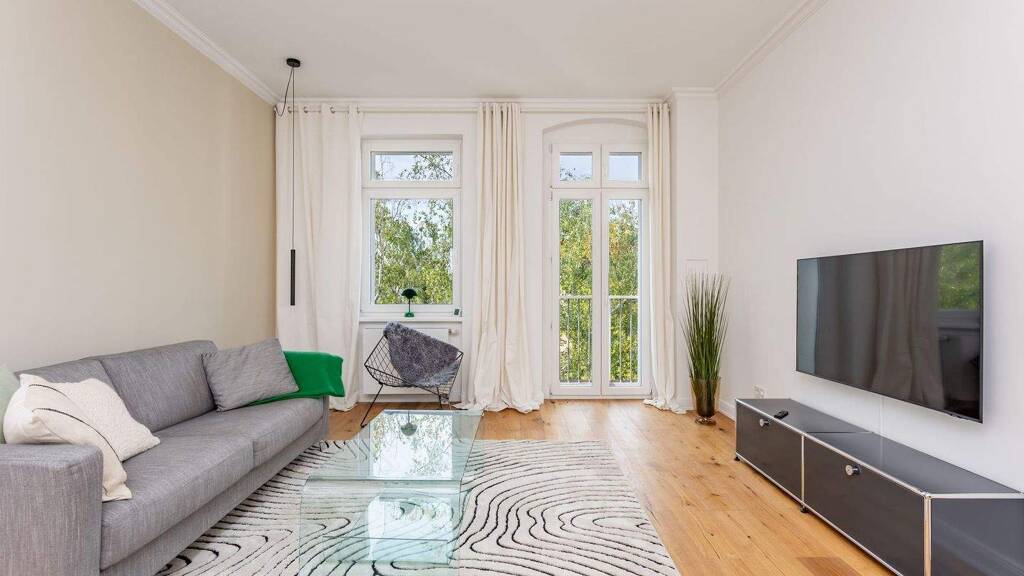 Diese stilvoll sanierte Altbauwohnung vereint gehobene Ausstattung mit klassischem Berliner Wohngefühl. Die ca. 66,24?m² große Einheit befindet sich im 4. Obergeschoss eines um 1900 erbauten Mehrfamilienhauses, das im Jahr 2017 umfangreich modernisiert wurde. Auch die Wohnung selbst wurde 2018 hochwertig und geschmackvoll erneuert. Die Raumaufteilung ist klar strukturiert: Ein helles Wohnzimmer mit Zugang zum sonnigen Balkon, ein ruhiges Schlafzimmer, ein elegantes Tageslichtbad sowie eine separate, hochwertig ausgestattete Designerküche. Das Badezimmer ist mit einer bodentiefen Dusche, einer Badewanne und modernen Armaturen ausgestattet - ein echtes Highlight für stilbewusstes Wohnen. Der durchgängige Echtholzparkettboden, glatt gespachtelte Wände und ausgesuchte Materialien unterstreichen den nahezu neuwertigen Zustand der Wohnung. Der Personenaufzug sorgt für zusätzlichen Komfort und macht die Wohnung auch langfristig attraktiv für unterschiedliche Zielgruppen. Beheizt wird das Haus effizient über eine moderne Fernwärmeanlage. Die Energieeffizienzklasse D bei einem Bedarf von 110,5?kWh/(m²·a) belegt den gepflegten energetischen Zustand des Gebäudes. Die Wohnung liegt im ruhig gelegenen Hinterhaus und bietet damit ein angenehmes Wohnumfeld abseits des Straßentrubels - ein Fahrradstellplatz im begrünten Innenhof steht ebenfalls zur Verfügung. Die Wohnung ist bezugsfrei und eignet sich ideal für Eigennutzer wie auch für Kapitalanleger, die eine werthaltige Immobilie in zentraler Berliner Lage suchen.