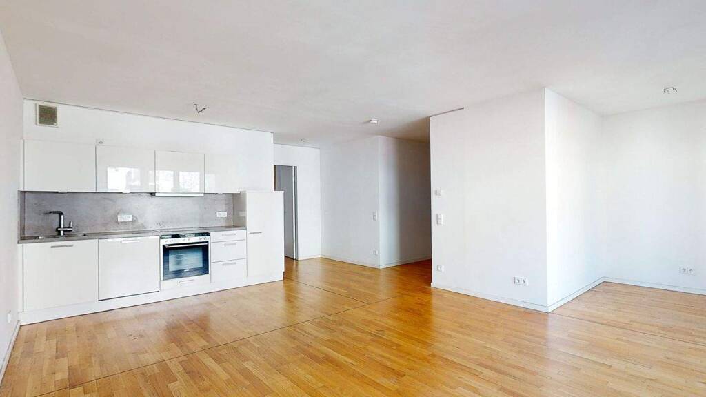 Alle Wohnräume sind mit Echtholzparkett ausgestattet und verfügen über Innenjalousien. In den Bädern und dem Hauswirtschaftsraum sind Steinfliesen vorzufinden. Die Beheizung der Wohnung erfolgt über eine Fußbodenheizung. Weiterhin kann ein Tiefgaragenstellplatz angemietet werden.