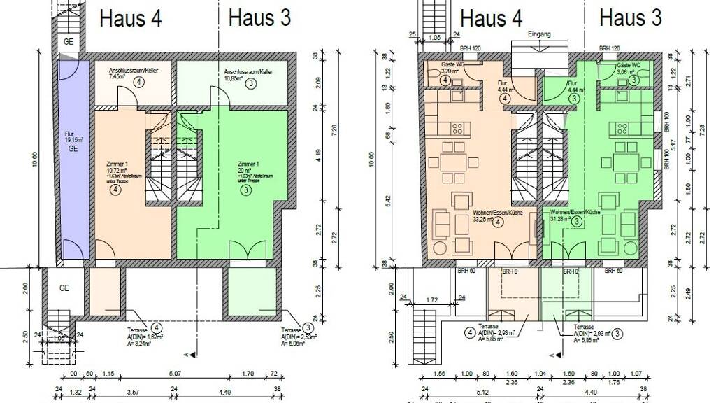 Hinterhäuser: Errichtung von zwei Doppelhaushälften. 1 x als Reihenhaus, 1 x als Eckhaus