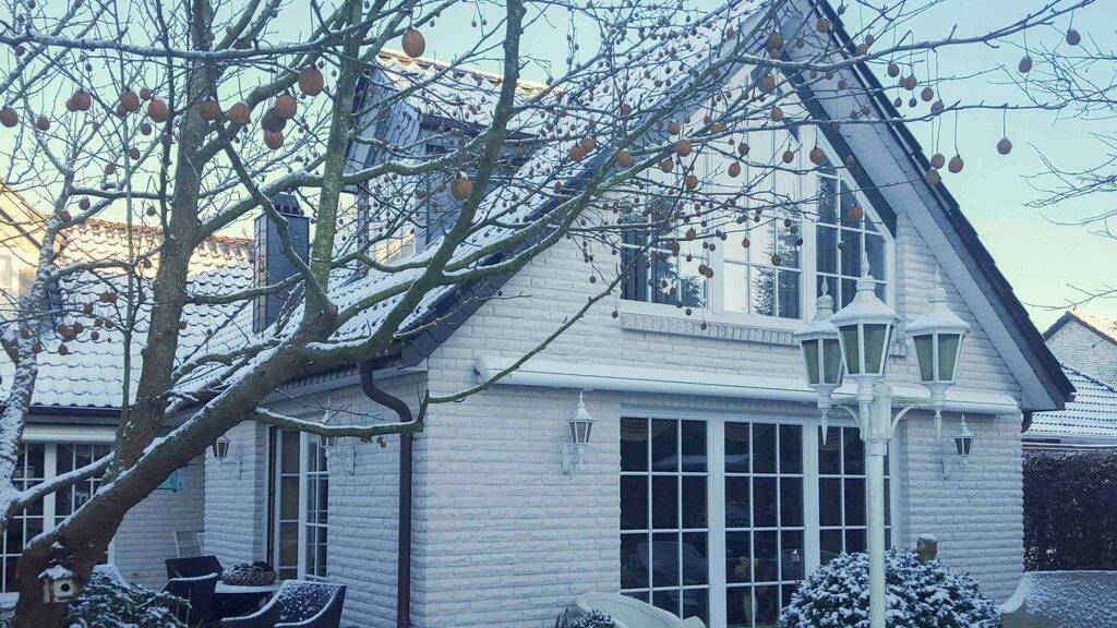 Das Außenmauerwerk ist mit einem speziellen Naturdämmstein verblendet, der nicht nur chic aussieht, sondern auch dämmende Eigenschaften hat und zusätzlich hydrophobiert ist, so dass das Haus immer schön trocken und sauber bleibt. Man hat bei dieser Generalüberholung viel Wert auf Qualität und Langlebigkeit gelegt; so sind z. B. die Regenrinnen aus Kupfer gefertigt, die Dachunterstände aus pflegeleichtem Kunststoff und die Bodenfliesen im Flur und Gäste-WC nicht von der Stange, sondern liebevoll bei einem regionalen Fachhandel zusammengestellt. Auch die Elektrik ist mit den separat schaltbaren Doppelsteckdosen, einem Panikschalter sowie Bewegungsmeldern kein Standard und sorgt so außerdem für zusätzliche Sicherheit.