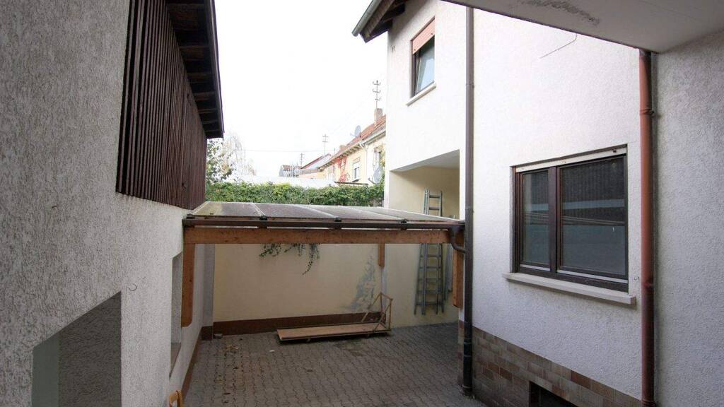 Das angebotene Reihenmittelhaus aus dem Jahr 1974 bietet eine Wohnfläche von ca. 200 m² auf drei Etagen verteilt. Es wurde 1974 auf eine ursprüngliche Bebauung gesetzt und als Ladengeschäft mit einem sehr hohen Erdgeschoß konzipiert. Das Ensemble auf dem 316 m² großen Grundstück besteht aus dem Haus und dem geräumigen Nebengebäude die um einen schönen Innenhof herum gebaut sind. Von der Straße aus erreicht man den Innenhof über eine hohe überdachte Einfahrt in dem ihr Fahrzeug wettergeschützt seinen Platz findet. Das Dach ist gedämmt und eine moderne Gasheizung eingebaut.