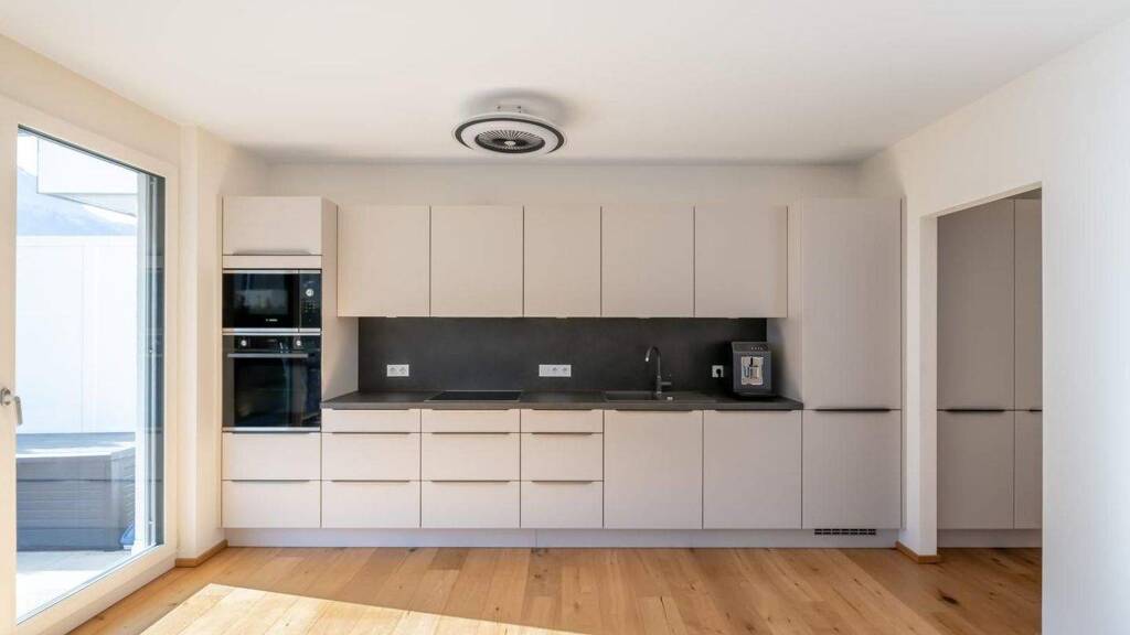 Die moderne, neue Küche ist bereits im Kaufpreis enthalten und fügt sich harmonisch in das hochwertige Gesamtbild der Wohnung ein. Edle Bodenbeläge, elektrische Raffstores sowie das Badezimmer mit Fenster und Badewanne unterstreichen den hohen Wohnkomfort.