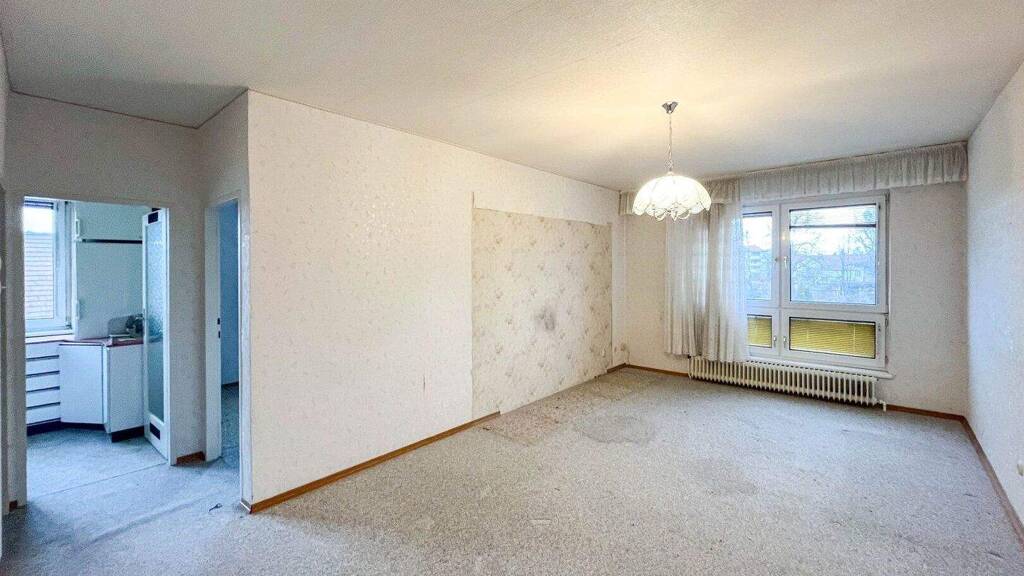 Der Eingangsbereich wird durch einen länglich gestalteten Vorraum gebildet, der ausreichend Platz für eine Garderobe bietet. Herzstück der Wohnung ist der großzügige Wohnraum, der vielfältige Möglichkeiten zur individuellen Gestaltung eines Wohn- und Essbereichs eröffnet. Ein weiteres Zimmer eignet sich ideal als Schlaf-, Arbeits- oder Gästezimmer. Die Küche ist funktional ausgestattet. Das Badezimmer verfügt über eine Badewanne, das WC ist separat ausgeführt. Ein praktischer Abstellraum innerhalb der Wohnung sorgt für zusätzlichen Stauraum.