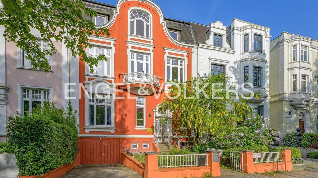- Prachtvolle Stadtvilla von 1886 mit hanseatischer Architektur und historischem Charme - Gesamtfläche ca. 700 m² auf einem 682 m² großen, sonnigen Grundstück - 16 Zimmer verteilt auf vier Ebenen - Aktuell vom Institut Français und dem französischen Generalkonsulat genutzt - Offener, lichtdurchfluteter Grundriss mit flexiblen Gestaltungsmöglichkeiten - Eindrucksvolles Entrée mit hohen Decken und großzügigen Sichtachsen - Repräsentative Wohn-, Ess- und Empfangsbereiche - Viel Raum für private Rückzugsorte, Kinder- und Gästezimmer oder Homeoffice - Gartengeschoss mit bodentiefen Fenstern und direktem Zugang ins Grüne - ideal für Gäste, Wellness, Fitness oder Atelier