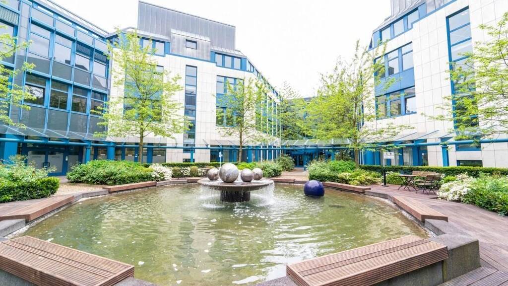 Die Büroimmobilie verfügt über einen Personenaufzug, mit dem sich alle Ebenen des Gebäudes problemlos erschließen lassen. Die zahlreichen Fensterfronten sorgen für eine ausreichende Belichtung der Büroräume. Die Büroräume sind mit einem hochwertigen Vinylboden in Holzoptik ausgestattet und wirken durch die integrierte Beleuchtung in der Decke hell und freundlich. Der begrünte Innenhof sowie die hauseigene Kantine sorgen für erholsame Pausen.