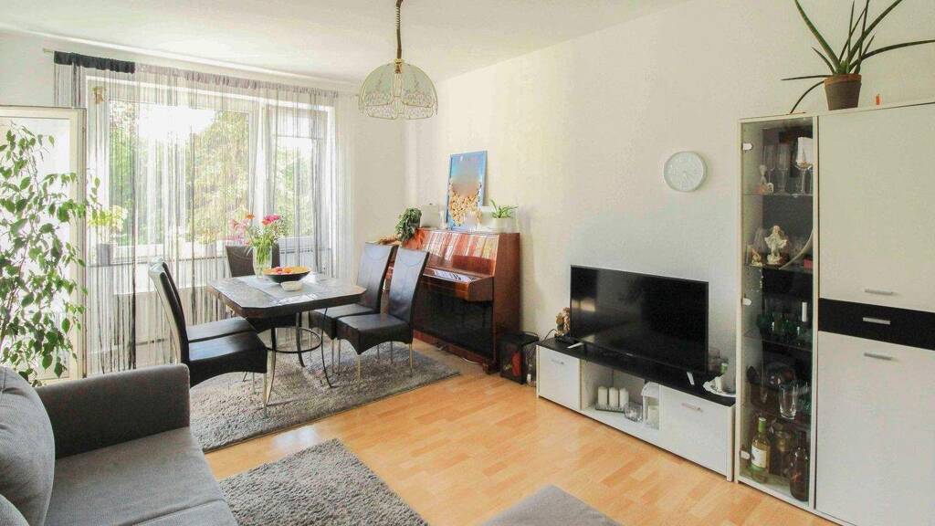 Die gut geschnittene und lichtdurchflutete Wohnung bietet ein großzügiges Wohn- und Esszimmer mit Zugang zum Balkon, der zu erholsamen Momenten im Freien einlädt. Eine angrenzende Küche, zwei weitere Zimmer mit vielseitigen Nutzungsmöglichkeiten sowie ein Badezimmer mit Dusche schaffen angenehme Wohnverhältnisse und machen die Immobilie zugleich attraktiv für Kapitalanleger.