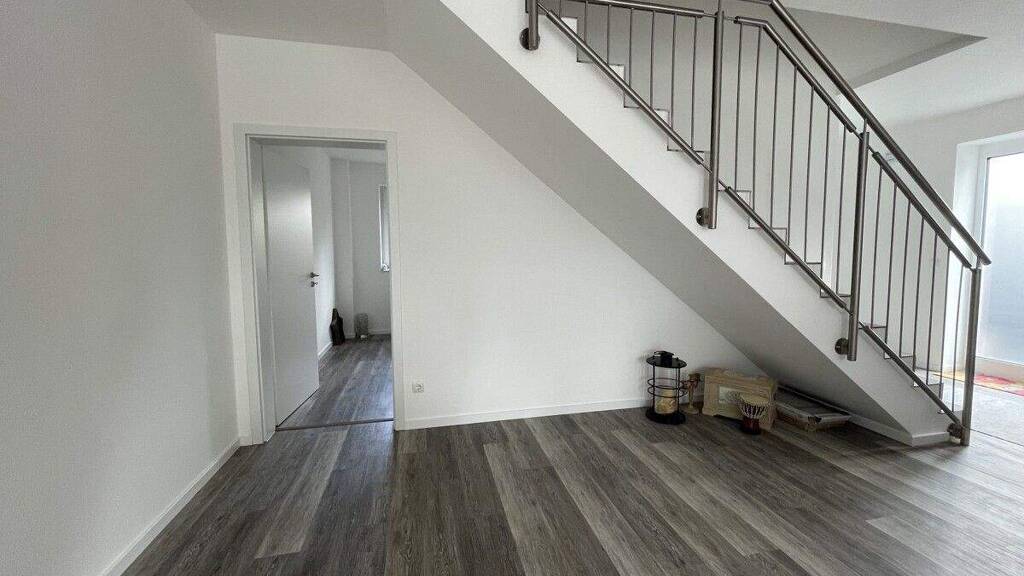 Ein heller Eingangsbereich führt Sie in den offenen Wohn- und Essbereich im Erdgeschoss. Eine perfekt integrierte Nische im Flur bieten Ihnen den nötigen Platz für Ihre Garderobe. Die zum Teil offene Küche muss lediglich noch mit Ihrer Einbauküche versehen werden, um leckere Gerichte für Familie und Freunde zuzubereiten. Alternativ können Sie die hochwertige und sehr gut durchdachte Einbauküche der Vormieterin übernehmen.