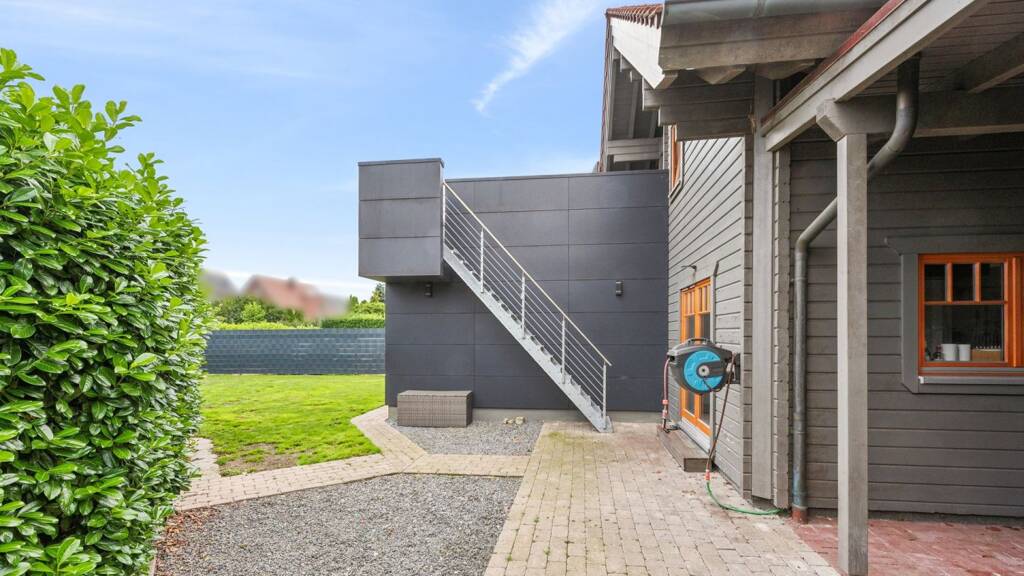 Ein zusätzliches Gästezimmer sowie ein Hauswirtschaftsraum und ein Gäste-WC runden das Raumangebot auf dieser Etage ab. Im Dachgeschoss befindet sich neben dem modernen Badezimmer drei weitere Schlafzimmer (darunter zwei Kinderzimmer und ein Elternschlafzimmer) sowie ein Ankleidezimmer. Die Galerie bietet zudem Zugang zur großzügigen Dachterrasse, der ideal für entspannte Stunden im Freien ist. Besonders hervorzuheben ist die helle Gestaltung des Hauses in Kombination mit der warmen Holzoptik, die eine behagliche Wohnatmosphäre schafft.