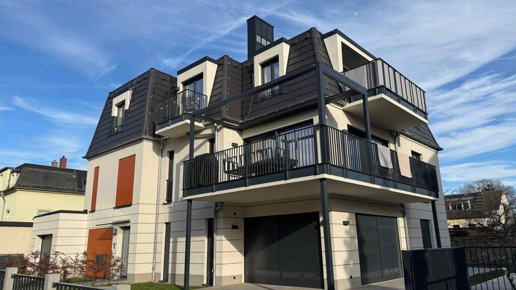 In einer der begehrtesten, gewachsenen Wohnlagen von Radebeul-West entstand eine Stadtvilla mit nur drei exklusiven Wohneinheiten. Schon beim Eintreten spürt man die klare Gestaltung und den hohen Qualitätsanspruch: Große Fensterflächen (dreifach verglast) bringen Licht und Weite in die Räume; elektrische Rollläden sorgen für komfortable Verdunkelung und Sicherheit. Der weitläufige Wohn-Essbereich bildet das repräsentative Zentrum der Wohnung. Abschließbare Fensteroliven, jeweils verstärkte mittlere Glasscheiben (6mm) sowie zusätzliche Signalgeber (Reed-Kontakt) bieten einen zusätzlichen Einbruchschutz.