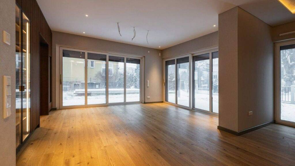 Die Haustechnik ist auf Zukunft ausgelegt: Eine Wärmepumpenanlage mit Erdwärmenutzung versorgt das Haus; die Energieeffizienz ist im KfW-55-Standard nachgewiesen. Video-Gegensprechanlage, TV-/Datenanschlüsse und die strukturierte Elektroausstattung stehen für verlässliche Digital-Infrastruktur. Der Personenaufzug erschließt die Wohnung bequem, die Tiefgarage mit PKW-Lift bietet geräumige Stellplätze; eine Wallbox-Vorbereitung ist vorgesehen.