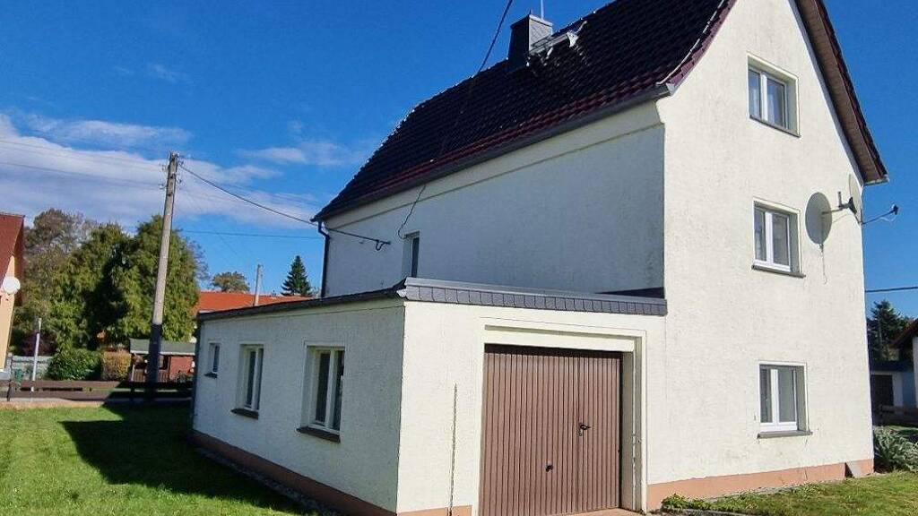 Das nicht unterkellerte Wohnhaus wurde einseitig an ein Nachbargebäude um 1880 angebaut und liegt im Innenbereich der Grundstücke. Umfassende Modernisierungen fanden ca. 1980 (u.a. Erneuerung des Dachstuhls), weiterhin 1995 und 2014 statt. Das Grundstück zieht sich länglich um die Bebauung. Der Gartenbereich hat ein kleines, teilweise massives Nebengebäude mit Stromanschluss und eine große Voliere sowie Wiesenflächen. Der Innenhof ist befestigt und es gibt eine PKW-Stellfläche vor der Garage.