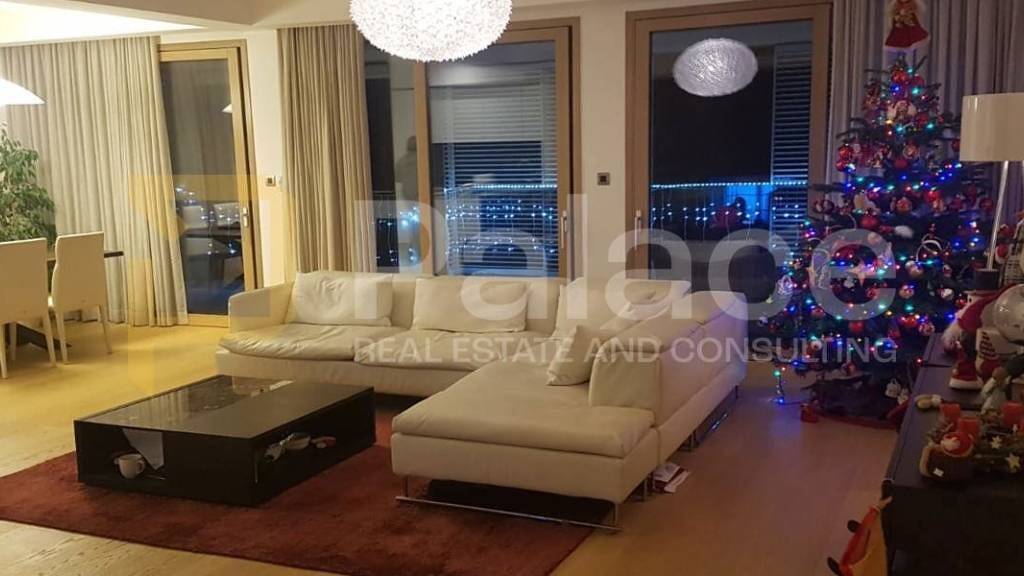 Die Gesamtwohnfläche der Wohnung beträgt 160 m und besteht aus zwei Schlafzimmern, zwei Badezimmern, einer Küche mit Essbereich und einem geräumigen, luftigen Wohnzimmer sowie einem großen Balkon.