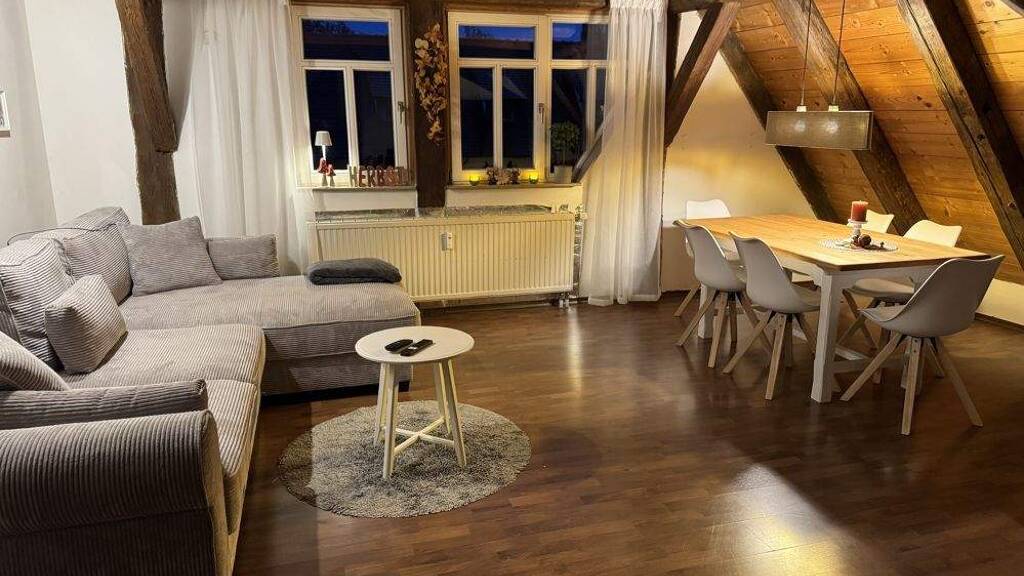 - Sofort verfügbar - Denkmalschutzimmobilie - Maisonettewohnung im DG eines 8-Familienhauses - Fassaden- und Treppenhaussanierung 2025 - neue Gasheizung 2020 - Laminatböden wurden in den vergangenen Jahren ausgetauscht - offenes Wohn- und Esszimmer mit angrenzender Küche mit neuer Einbauküche - Tageslichtbad mit Badewanne, Dusche und Waschmaschinenplatz - Kinderzimmer - Abstellraum in der Wohnung - Wendeltreppe zum 34 qm großen Schlafraum. Dort ist genug Platz um daraus 2 Zimmer zu gestalten - Garagenplatz in einer Doppelgarage und zusätzlich einen Außenstellplatz Denkmalgeschütztes Objekt (18. Jahrhundert) - steuerliche Vorteile möglich