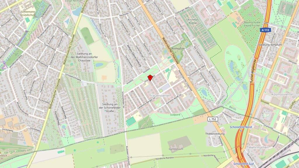 Die Wohnung liegt in einem gepflegten und angenehm ruhigen Wohnumfeld im Süden Berlins, eingebettet in einen der grünsten Bereiche des Stadtteils Rudow. Die Nachbarschaft zeichnet sich durch eine ausgewogene Mischung aus Wohnhäusern, kleinen Parks und baumgesäumten Straßen aus, was ein entspanntes und zugleich lebendiges Wohngefühl vermittelt.