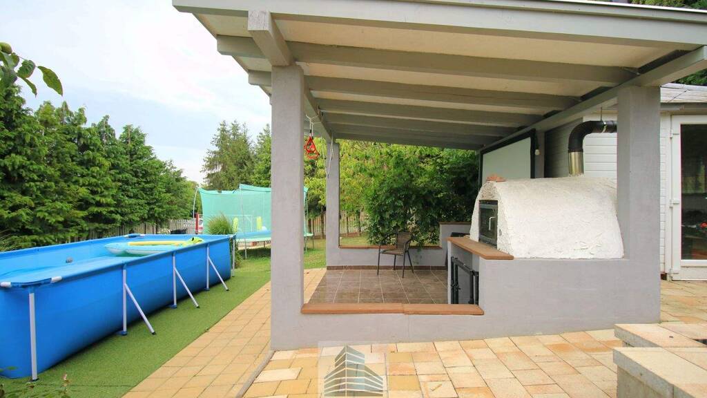 Extras: elektrisches Tor, Kamerasystem, Zisterne 8000 liter, LED-Kerzenleuchter mit Dämmerungsschalter, Fensterladen + Moskitonetz, Roboter-Rasenmäher, Pool, Trampolin, Whirlpool, eingebauter Ofen, überdachter Holzlagerraum (7m3 Holz/Heizsaison!).