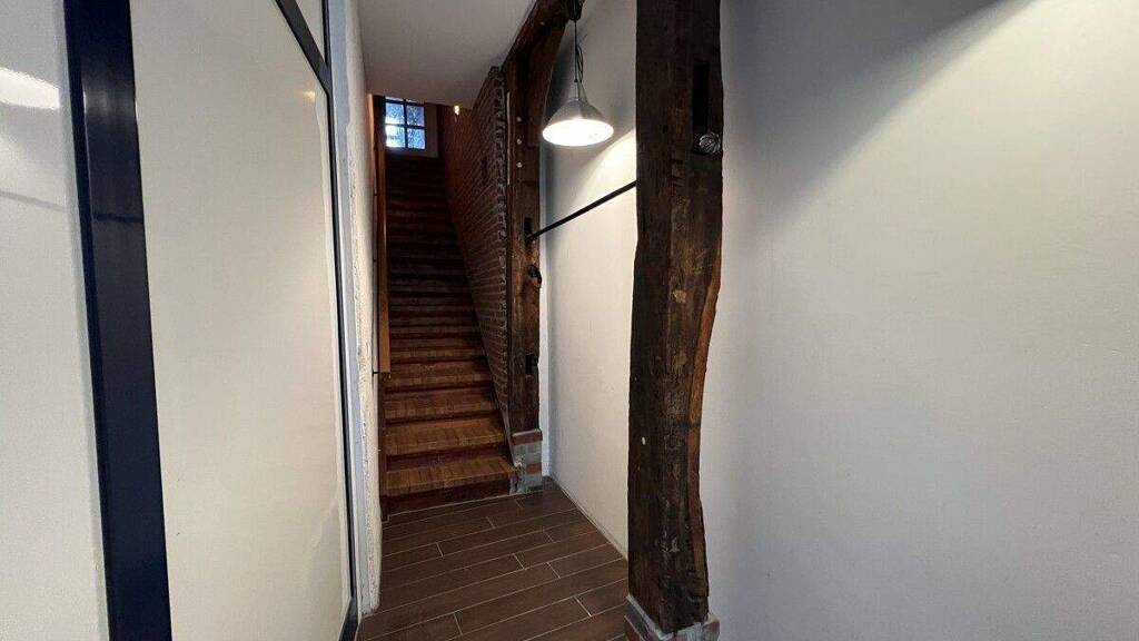 Die hier zur Miete angebotene 3,5-Zimmer-Maisonette-Wohnung befindet sich in einem denkmalgeschützten Fachwerkhaus aus dem 19. Jahrhundert, zentral in der Altstadt von Buxtehude.
