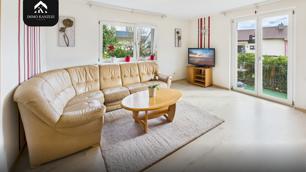 Bereits beim Betreten empfängt Sie ein Eingangsbereich mit ausreichend Platz für eine Garderobe, der für einen aufgeräumten und freundlichen ersten Eindruck sorgt. Rechts davon liegt das geräumige Wohnzimmer mit direktem Zugang zum Balkon - der ideale Ort für entspannte Feierabende oder den Kaffee am Morgen.