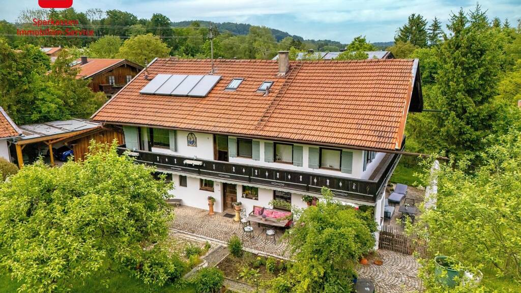 Dieses historische Bauernhaus im traditionellen oberbayerischen Stil mit Einliegerwohnung bietet eine Wohnfläche von ca. 273 m² auf einem großzügigen Grundstück von ca. 1.356 m². Die Immobilie verfügt über eine Vielzahl von Parkmöglichkeiten, darunter zwei Stellplätze unter einem Carports, eine Garage (derzeit nicht genutzt) und zwei bis drei Möglichkeiten für Außenstellplätze. Das Haus ist derzeit eigengenutzt und kann in wenigen Monaten nach Absprache bezogen werden. Das Bauernhaus wurde ca. 1880 errichtet ist als Massivbau konstruiert und voll erschlossen. Es bietet eine kleine, teilweise Unterkellerung und ein voll ausgebauten Dachgeschoss. In den 1950-1980 Jahren wurde das Haus innen umgebaut und modernisiert. Die aktuelle Grundrissgestaltung stammt aus ca. Mitte der 2000er Jahre. Die Gesamtfläche verteilt sich auf drei Geschosse, in denen sich insgesamt zehn Zimmer befinden, darunter acht Schlafzimmer. Die Treppenaufgänge in Holz und die typische Gestaltung der Flure erzeugen eine gemütliche Atmosphäre. Die Badezimmer sind mit modernen Ausstattungen wie Badewanne und Dusche versehen und bieten auch ein Gäste-WC sowie ein Tageslichtbad. Besonders gemütlich ist die Wohnküche mit dem alten Kachelofen gestaltet, welcher auch zum Kochen geeignet ist. Im modernen großen Wohnzimmer mit Erker und Eck-Sitzbank ist Platz für eine große Wohnlandschaft bzw. viele Gäste. Der Ausblick über Terrasse und Garten ist hier ein besonderes Highlight. Um den 1. Stock verläuft ein Holz-Balkon, welcher Ausblick auf alle Seiten des Hauses bietet. Im Dachgeschoss gibt es auch eine Giebellodgia, welche wiederrum ein historisches Merkmal dieses Anwesens ist. Der Außenbereich lädt mit einem umlaufenden Garten, einer Streuobstwiese, vielen Blumen und blühenden Sträuchern ein. Auf drei Seiten befinden sich Terrassenflächen für jede Tageszeit, teilweise überdacht. Für Gartenfreunde sind viele Gestaltungsmöglichkeiten auf dem Grundstück gegeben. Allerdings lässt sich die Fläche auch noch gut pflegen, da nur wenig Hanglage gegeben ist.
