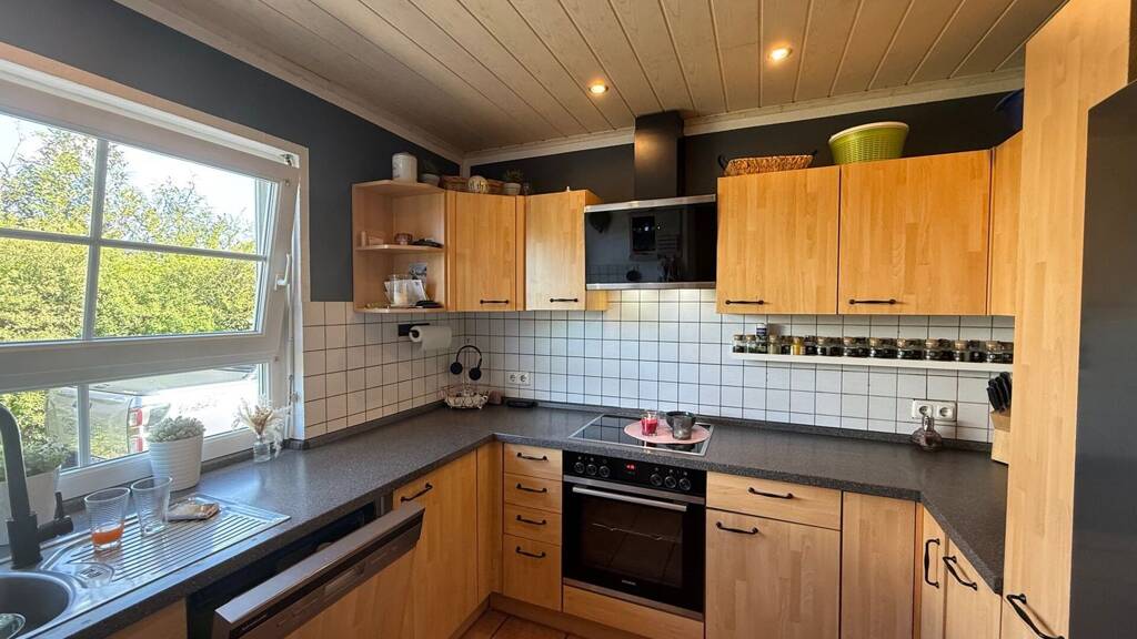 . Gas-Brennwerttherme aus 2023. . Wasserenthärtungsanlage aus 2023 . Wertige Laminatböden in Wohn- und Schlafbereichen . 2 Einbauküchen mit gängigen Geräten. . Moderne Bäder, Duschbad EG. 2021 . Fenster mit innenliegender Sprosse und Außenrollläden . Vollkeller mit Außenzugang . Große Sonnenterrasse mit elektrischer Markise . Carport mit großem Abstellraum