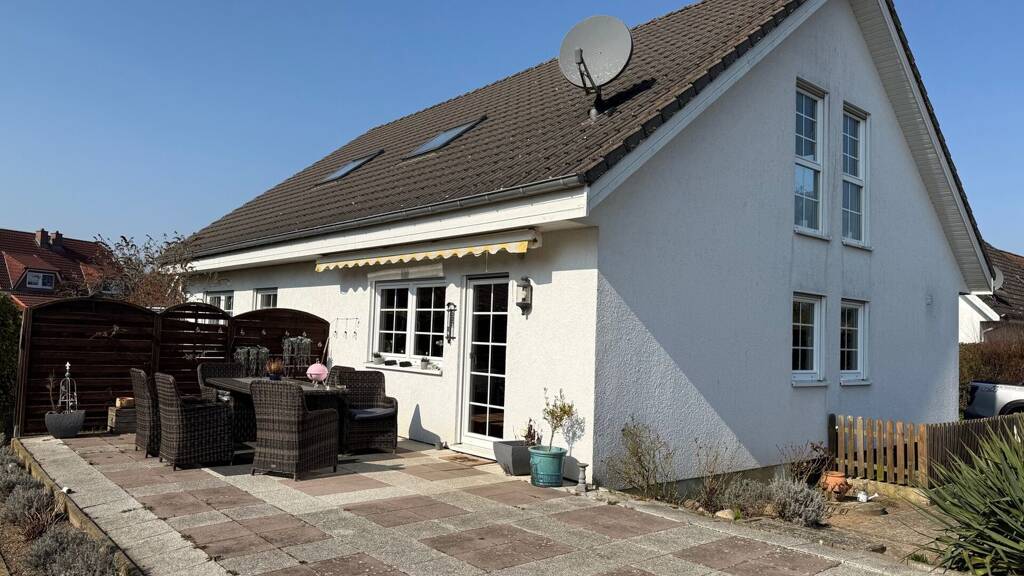 Das von uns angebotene Haus wurde erst 2003 in Holzständerbauweise mit Putzfassade und Satteldach errichtet. Das Dach ist mit schwarzen Tondachpfannen eingedeckt. Die weißen Kunststofffenster sind mit Isolierverglasung (U-Wert 1,1) und Außenrollläden ausgestattet. Das Haus wird zurzeit als Zweifamilienhaus genutzt und wurde daher entsprechend aufgeteilt. Die gesamte Wohnfläche umfasst ca. 180 m² auf 2 Etagen zzgl. ca. 113 m² im Vollkeller. Das Eigenlandgrundstück hat eine Größe von ca. 1.132 m² und bietet einen verhältnismäßig pflegeleichten Gartenbereich, der viel Raum für individuelle Gestaltung und Privatsphäre bietet. Des Weiteren befinden sich am Haus eine große Sonnenterrasse sowie ein geräumiger Carport und ausreichend Pkw-Stellplätze.