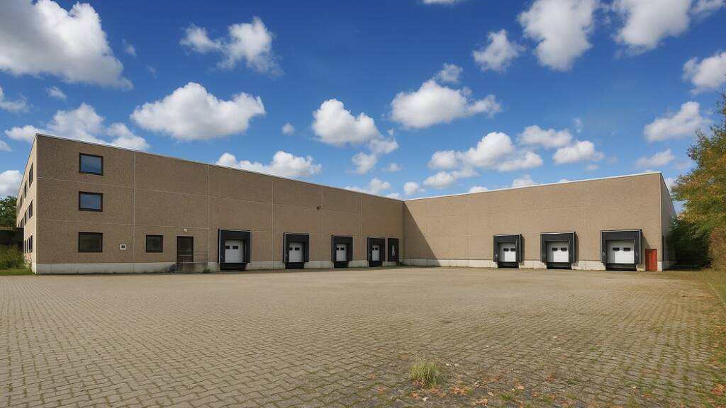 Die 1994 errichtete Logistik-/Lagerhalle samt dreistöckigem Verwaltungstrakt befindet sich auf einem eingezäunten 10.448 m² großen Grundstück. Ca. 6.200 m² der Grundstücksfläche sind bebaut, die restliche Fläche ist überwiegend gepflastert und mit etwas Rasen pflegeleicht angelegt. Die Zufahrt erfolgt durch ein 6 Meter breites Metalltor und führt direkt aufs Gelände bzw. die Rangierfläche und zu den 50 Stellplätzen.