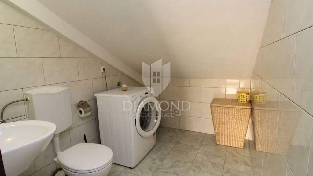In einer attraktiven Lage in Srdoci steht eine großzügige Wohnungsetage mit herrlichem Panoramablick auf die gesamte Kvarner Bucht zum Verkauf. Die Wohnung hat eine Fläche von 100 m² und besteht aus einem großen, hellen Wohnzimmer, einer Küche mit Essbereich, zwei Schlafzimmern, einem Badezimmer und einem separaten WC.