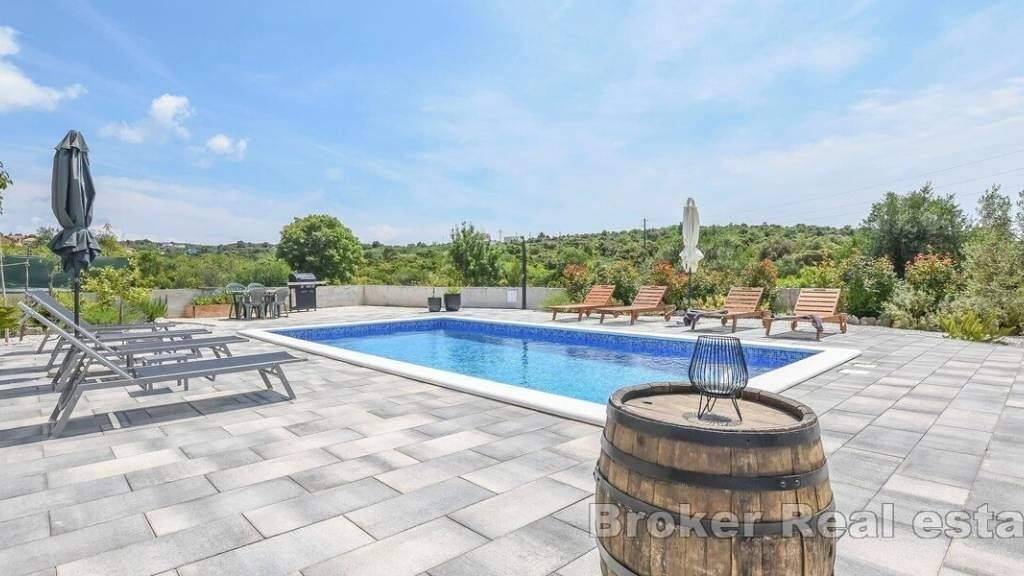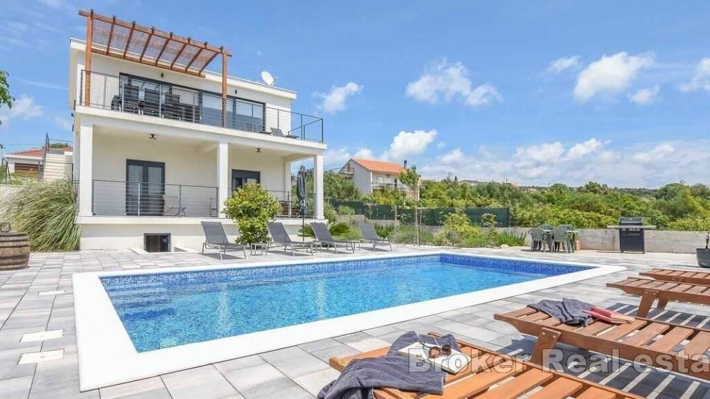 Zum Verkauf steht eine möblierte Villa in ruhiger Lage in der Nähe von Rogoznica. Erbaut auf einem Grundstück von 1033 m2 und einer Gesamtwohnfläche von 124 m2.