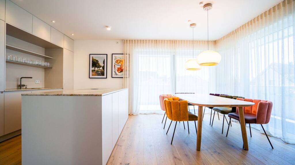 Schon beim Eintreten durch die massive Wohnungstür wird klar: Diese Wohnung ist mehr als nur ein Ort zum Wohnen - sie ist ein stilvoller Rückzugsort, ein Refugium für alle, die Design, Ruhe und Qualität schätzen. Auf rund 115 m² Wohnfläche, ergänzt durch einen großzügigen Balkon mit 23,6 m², entfaltet sich ein Zuhause, das Licht, Raum und Stil in perfekter Harmonie vereint.