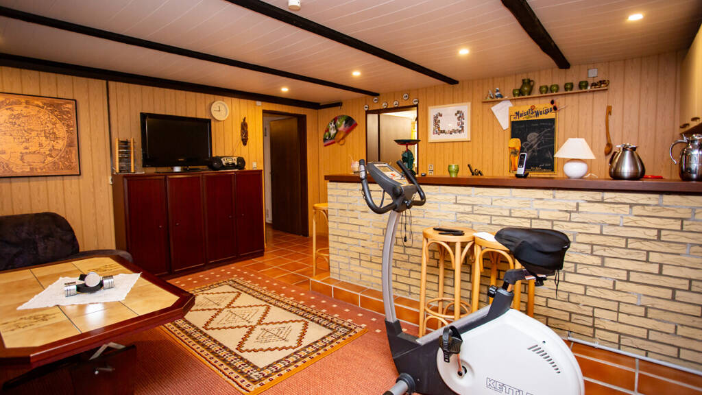 Untergeschoss & Außenanlagen: Der Vollkeller bietet Werkstatt, Hobbyraum und einen Partyraum mit Küche/Bad. Ein weitläufiger Garten sowie eine Doppelgarage ergänzen das Objekt.