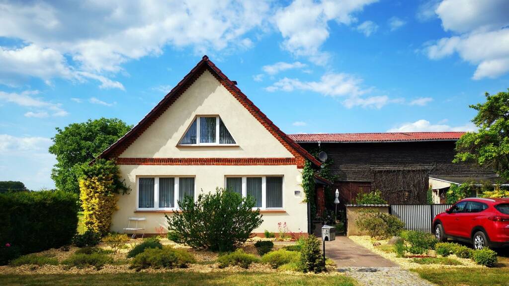 Charmantes Einfamilienhaus mit Scheune und großem Grundstück in Schlemmin. Dieses charmante, freistehende Einfamilienhaus aus der Aufsiedlungszeit bietet auf ca. 120 m² Wohnfläche eine behagliche Wohnatmosphäre mit Ausbaureserven. Das Haus umfasst zwei Stockwerke und verfügt über eine gemütliche Küche, zwei große Wohnzimmer sowie drei Schlafzimmer. Das Vollbad ist mit einer Dusche, Badewanne und einem Fenster ausgestattet. Das teilunterkellerte Haus wird durch eine Ölheizung beheizt, die sich im Keller befindet. Neben dem Wohnhaus gibt es eine angrenzende große Scheune, eine geräumige Garage sowie eine separate "Partyküche". Das gepflegte Grundstück mit einer Fläche von knapp 4.000 m² ist weitgehend eingefriedet und besticht durch seinen alten Obstbaumbestand sowie die direkte Lage an ein weitläufiges Feld.