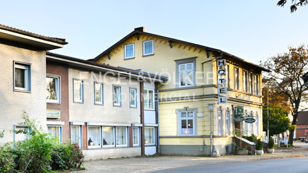 Bei unserer angebotenen Immobilie handelt es sich um ein renommiertes, alt eingesessenes Hotel "Deutsches Haus" im Herzen von Cuxhaven - Altenbruch. Das Hotel ist bei Urlaubern und Monteuren gleichermaßen beliebt und wird profitabel betrieben. Das Hotel befindet sich in einem Mischgebiet in offener Bauweise. Hier wäre mit relativ hoher Sicherheit davon auszugehen, dass auch eine Umnutzung des Gebäudes realisierbar wäre. Dies wäre selbst-verständlich zuvor durch eine Bauvoranfrage abzuklären. Das Objekt ist geprägt durch ein weitläufiges Gelände und einer gewachsenen Gebäudestruktur mit vielfältigen Mög-lichkeiten. Das ursprüngliche Hotelgebäude ist im Jahre 1870 erstanden. Die einzelnen Erweiterungen des Hotelkomplexes ziehen sich bis ins Jahr ca. 1978 hin. Die Immobilie wurde auf einem Grund mit einer Flächengröße von ca. 3.750 m² erstellt. Der Gebäude-komplex besitzt eine Flächengröße von insgesamt ca. 1.404 m² und einer berechneten Bruttogrundfläche von ca. 2.344 m². Es steht zudem eine komplette, gut ausgestattete Küche zur Verfügung, die ebenso für einen ausgewachsenen Restaurantbetrieb geeignet wäre. Der Restaurantbetrieb würde durch eine Bar inkl. Speisesaal wohltuend ergänzt werden. Das Objekt wurde in Massivbauweise erstellt und ist teilunterkellert. Hierzu ist anzumerken, dass der Keller als trocken bezeichnet werden kann. Momentan werden ca. 25 Hotelzimmer betrieben. Das Gros der Hotelzimmer befindet sich auf einem heutigen Wohnstandard. Hier wurde in nicht all zu ferner Vergangenheit einiges an Kapital investiert, um die Hotelzimmer auf ein entsprechend zeitgemäßes Niveau anzuheben. Lt. Eigentümer besteht hier zudem die Genehmigung, das Hotel auf ca. 34 Hotelzimmer ausbauen zu können. Ebenso bestünde die Möglichkeit, den Gebäudekomplex mit weiteren Gebäuden zu ergänzen, was dem Objekt allgemein eine hohe Flexibilität in puncto Nutzen verleiht. Hier wäre also einiges an Raum geboten, die Aufnahmekapazität stark zu erhöhen. Die Fassade des ursprünglichen Teil des Objekts, wie angeblich auch der Saalboden, stehen unter Denk-malschutz. Dies sollte einem weiteren Ausbau nicht zwingend im Wege stehen, zudem ggf. bei Renovierung/Sanierung dieses Teils Zuschüsse beim Land beantragt werden könnten. Zu erwähnen ist zudem, dass die Heizungsanlage neu ist und inklusive einer ergänzenden Solaranlage für einen entsprechend größeren Bedarf als derzeit ausgelegt ist.