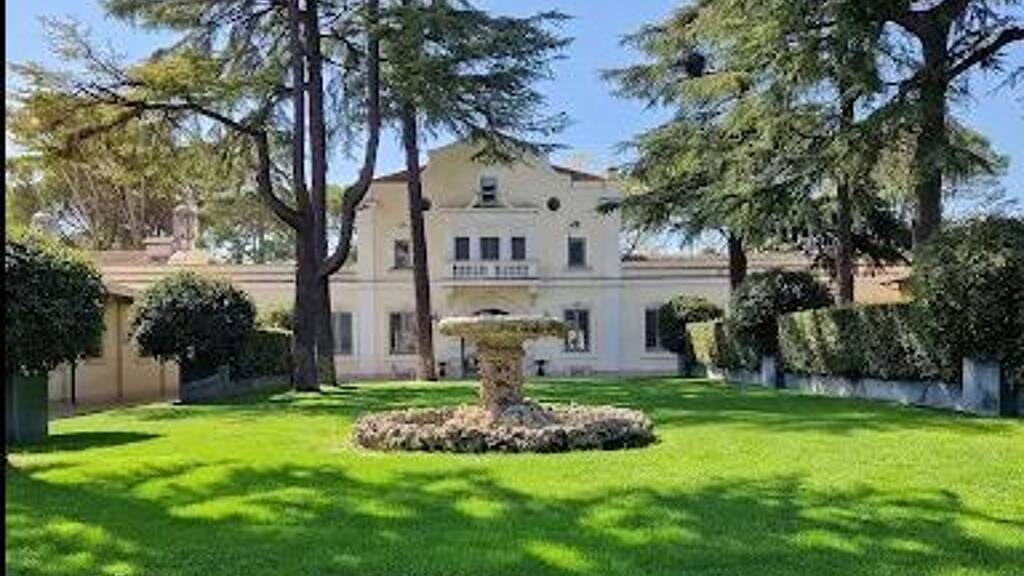 Eine Treppe führt zum Eingang mit einem großen Anbau und Wohnzimmer, das sich nach Norden öffnet und durch das Arbeitszimmer, die Bibliothek und die alte Wohnung gekennzeichnet ist. Die Südseite verfügt über zwei luxuriöse Hallen von 500 Quadratmetern, die auf eine Außenterrasse von über 300 Quadratmetern mit Blick auf die Castelli Romani, Tivoli und die Tiburtini-Berge führen.