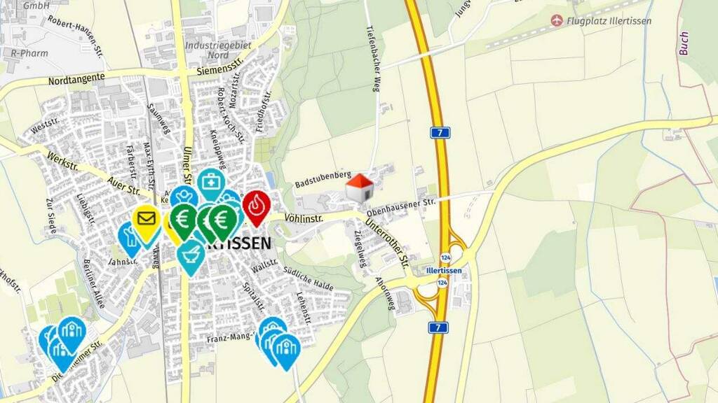 Die Immobilie befindet sich in einem gewerblich geprägten Umfeld in Illertissen mit schneller Verkehrsanbindung an die A7, es bietet sich eine schnelle Erreichbarkeit für Mitarbeiter, Kunden und Lieferanten sowie eine effiziente Anbindung an das regionale Verkehrsnetz.