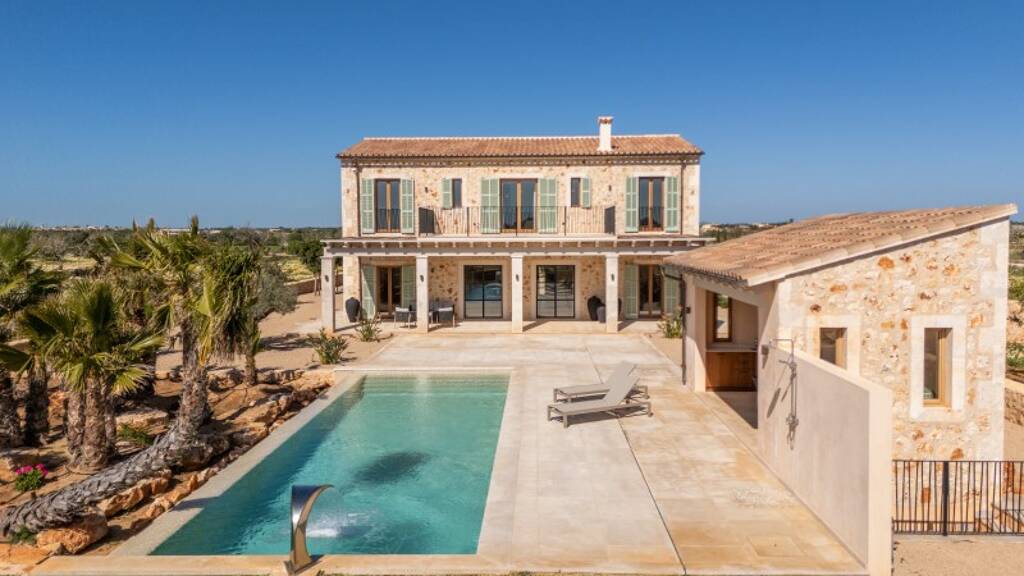 Auf einem ländlichen und ruhigen Grundstück mit einer Fläche von 14.300 m2 in der Nähe von Es Llombards wurde diese repräsentative Finca mit Pool, Poolhaus, Gästehaus und Gym im typischen Landhausstil und mit hochwertiger Ausstattung soeben fertiggestellt. Das gesamte Grundstück ist von traditionellen Natursteinmauern umgeben.