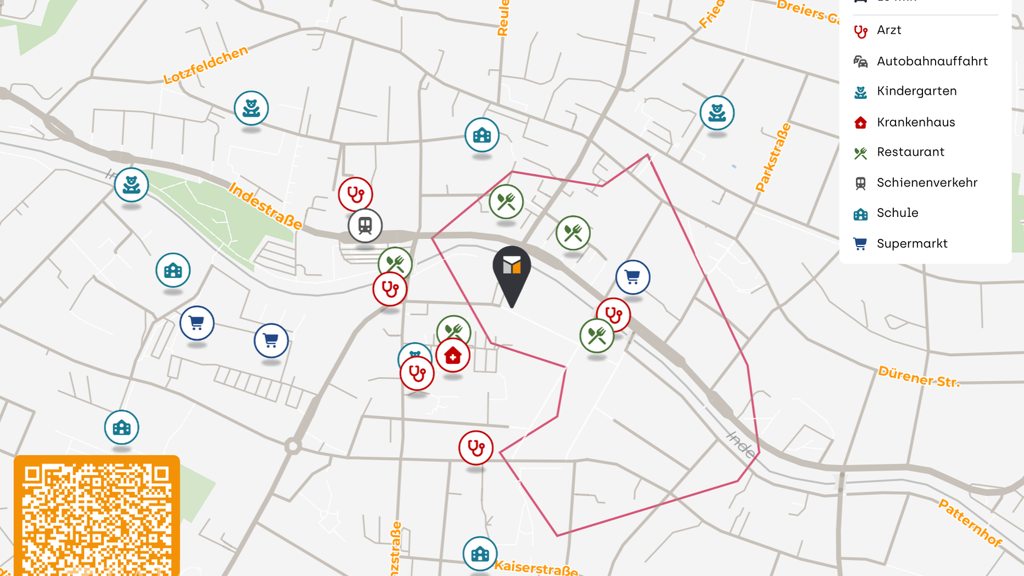 Auch das Thema Erreichbarkeit mit dem Auto ist gut abgedeckt: Die Autobahnen A4 und A44 sind im Raum Eschweiler zügig erreichbar und verbinden die Lage mit den Zentren der Region. Für überregionale Reisen bieten sich die Flughäfen Köln Bonn und Düsseldorf als gut erreichbare Optionen an. Zusätzlich erleichtern mehrere E Ladestationen in der Nähe den Umstieg auf Elektromobilität.