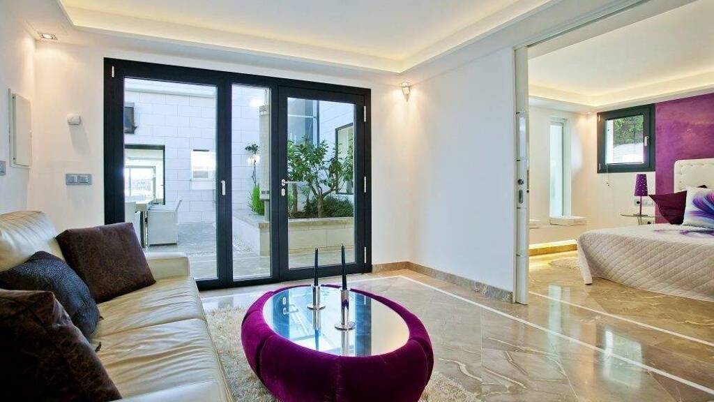 The villa has been meticulously designed down to the finest detail, using carefully selected high-quality materials to provide the highest levels of luxury and comfort. Advanced home automation and smart-home technology are integrated throughout the property. Additional features include a wine cellar, a double garage, underfloor heating, air conditioning (hot/cold), and double-glazed aluminium windows.