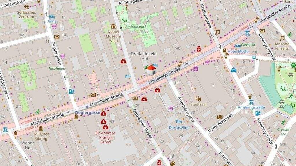 Die gesamte Infrastruktur der Mariahilfer Straße bietet ein abwechslungsreiches Angebot an Einkaufsmöglichkeiten sowie Restaurants.