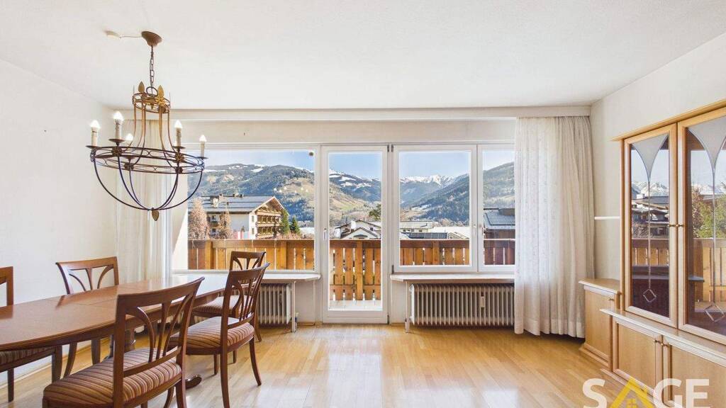 Diese charmante 3,5-Zimmer- Wohnung in zentraler Lage von Zell am See bietet auf ca. 99 m² Wohn- Nutzfläche ein attraktives Zuhause mit viel Potenzial. Ein besonderes Highlight ist der Seeblick, der durch die großen Fensterflächen im Wohnbereich sowie in beiden Schlafzimmern genossen werden kann und für ein helles, freundliches Wohnambiente sorgt.