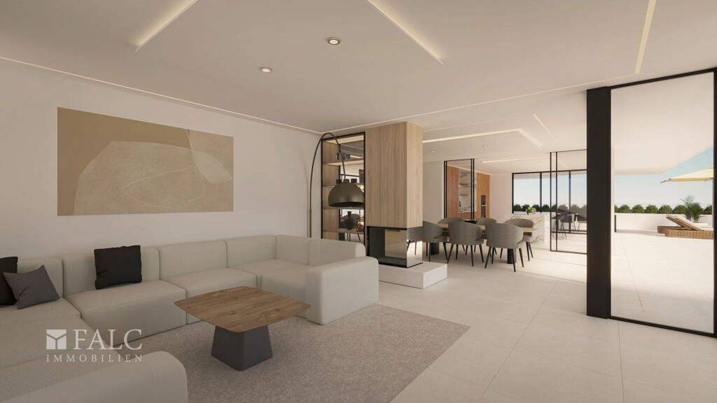 Diese Neubau-Villa in Sa Font Seca überzeugt mit einer luxuriösen Ausstattung und einem fantastischen Panoramablick auf die Bucht von Palma. Diese aussergewöhnliche Immobilie bietet eine beeindruckende Wohnfläche von ca. 506 m2 sowie ein grosszügiges Grundstück von ca. 1311 m2 und erfüllt selbst höchste Ansprüche an Lebensqualität. Die Villa umfasst 4 geräumige Schlafzimmer sowie 3 Badezimmer über drei Etagen verteilt, um höchsten Komfort zu gewährleisten. Darüber hinaus ist die hochmoderne Küche mit erstklassigen Geräten sowie exquisiten Oberflächen ausgestattet. Die weitläufigen offenen Wohnbereiche sind durch bodentiefe Fenster lichtdurchflutet und schaffen einen nahtlosen Übergang zum Aussenbereich mit sonnigen Terrassen und einem Infinity-Salzwasserpool. Von hieraus hat man einen atemberaubenden Ausblick über die Bucht und schafft somit den idealen Rahmen für Entspannung oder gesellige Zusammenkünfte. Mehrere Aussenlounge-Bereiche laden dazu ein, das Sonnenlicht zu geniessen sowie die beeindruckende Landschaft zu bewundern. Zu den zusätzlichen Annehmlichkeiten dieser Luxusvilla zählen eine grosszügige Garage für bis zu 15 Fahrzeuge, Fussbodenheizung im gesamten Haus sowie ein umweltfreundliches Aerothermie-System. Zusätzlich verfügt sie über Hausautomationssysteme zur intuitiven Steuerung von Beleuchtung, Sicherheit und Klima. Jedes Detail dieser Villa wurde sorgfältig konzipiert, um ein aussergewöhnliches Wohnerlebnis zu schaffen. Es handelt sich um eine ruhige Lage, während man die Hauptstadt Palma in ca. 15 Minuten mit dem Auto. Geplante Fertigstellung: Sommer 2025