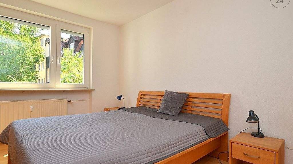 Die ca. 75m² große Wohnung befindet sich im 2.Obergeschoss eines Mehrfamilienhauses und ist bequem mit dem Aufzug zu erreichen. Die Wohnfläche ist mit Parkettboden ausgelegt und mit Naturmöbeln eingerichtet. Die beiden Schlafzimmer sind mit einem Doppelbett bzw. einem Einzelbett und einem Kleiderschrank möbliert. Die Einbauküche ist mit allen nötigen Küchenutensilien, Herd mit Backofen, Mikrowelle und einer Spülmaschine ausgestattet. Hier befinden sich zudem eine Waschmaschine und ein Trockner. Das helle Wohnzimmer ist mit einer gemütlichen Couch, einem ausziehbaren Esstisch für Platz bis zu sechs Personen, sowie einer Wohnwand mit TV möbliert. Von hier aus ist der Balkon begehbar. Das innenliegende Bad verfügt über eine Badewanne und ein WC. Ein weiteres, separates WC ist zudem vorhanden. In der angegebenen Miete sind 300€ Betriebskostenpauschale enthalten. Hinzu kommen die Kosten für Strom nach Verbrauch. Wlan und eine Garage sind im Mietpreis inkludiert. Bei Auszug wird eine Endreinigung je nach Aufwand mit der Kaution verrechnet. Trotz der Innenstadtlage liegt die Wohnung sehr ruhig. Die nächste Bus- und Straßenbahnhaltestelle, der Main und Geschäfte des täglichen Bedarfs befinden sich in unmittelbarer Nähe.