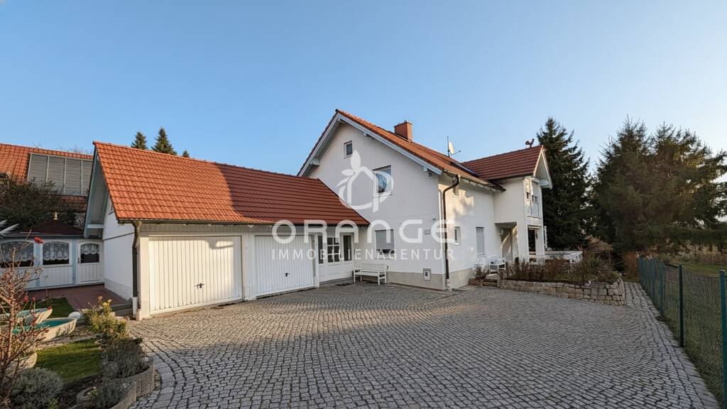 Exklusive Wohnung mit separatem Büro, Gartenanteil & Garage - selten im Zweifamilienhaus Diese Immobilie bietet eine seltene Kombination aus Wohnen, Arbeiten und eigenen Außenflächen. Die ca. 100 m² große Wohnung im 1. Obergeschoss überzeugt durch helle Räume und einen durchdachten Grundriss. Das großzügige Wohnzimmer mit Sonnenbalkon bildet den Mittelpunkt, ergänzt durch Küche, Esszimmer, Schlafzimmer mit Bad en Suite, Gäste-WC sowie ein zusätzliches Zimmer im Dachbereich. Ein besonderes Highlight ist die ca. 30 m² große, separat zugängliche Büroeinheit - ideal für Selbstständige oder Home-Office mit klarer Trennung von Wohnen und Arbeiten. Zur Wohnung gehören eine Garage, ein eigener Gartenanteil sowie ein großer Kellerraum. Optional steht ein vorbereiteter Wellnessbereich mit Sauna zur Verfügung. Der Kaufpreis beträgt 299.500 € im unsanierten Zustand. Die Wohnung wurde bewusst nicht modernisiert, sodass Sie diese nach eigenen Vorstellungen gestalten können. Für Maler- und Bodenarbeiten sollten ca. 20.000 € eingeplant werden. Eine neue Gasheizung mit Flüssiggastank sorgt künftig für eine moderne und unabhängige Energieversorgung. Teilweise sind die Bilder KI generiert.