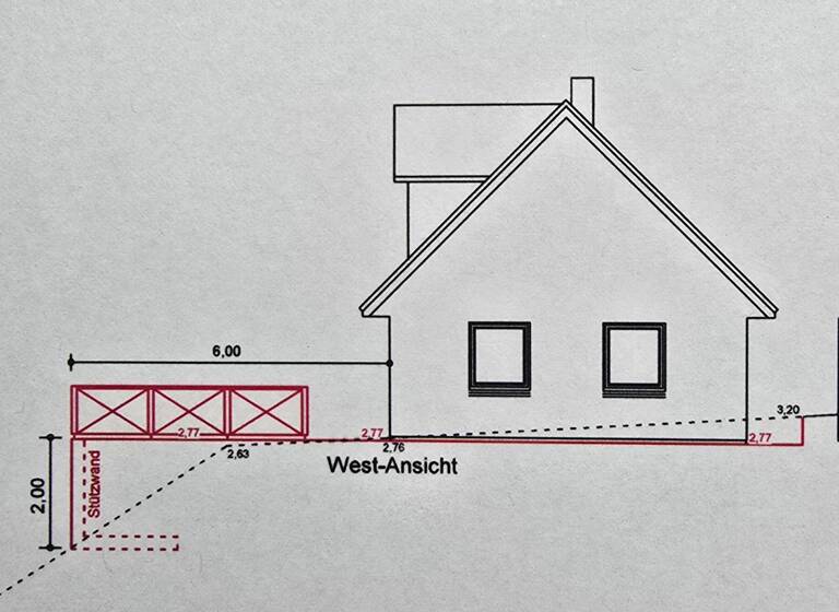 Gründung: Stahlbetonstreifenfundament und eine Stahlbetonsohle gem. Statik.
