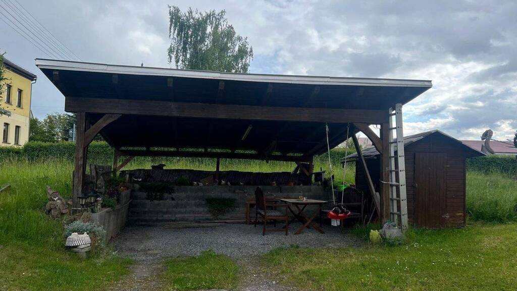 Das gepflegte Grundstück überzeugt mit einem großen Carport, einem Schuppen, einem überdachten Holzlager sowie einem besonderen Highlight: einem separat eingefriedeten Gartenbereich mit eigenem Kamin – perfekt für entspannte Stunden im Freien oder gesellige Grillabende.