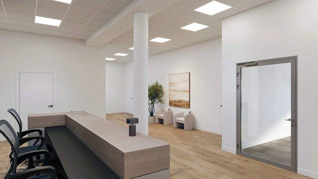 Im Eingangsbereich des Gebäudes befindet sich eine zentrale Servicetheke,
