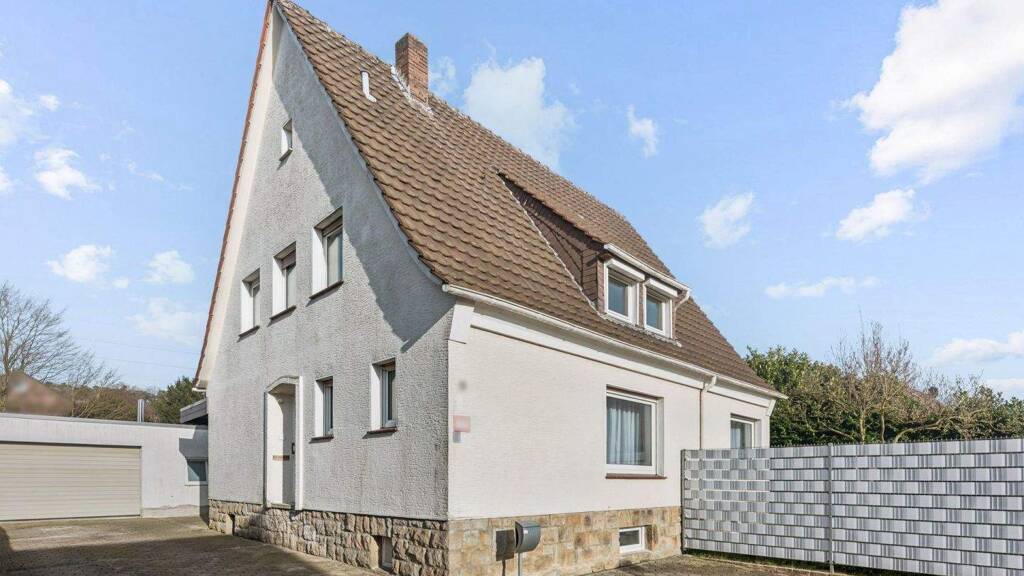 Dieses charmante Einfamilienhaus, ca. aus dem Baujahr 1953, befindet sich in angenehmer Wohnlage von Ibbenbüren und bietet mit ca. 129 m² Wohnfläche auf einem ca. 490 m² großen Grundstück ein ideales Zuhause für Familien oder Paare mit Platzbedarf. Bereits beim Betreten des Hauses vermittelt die Immobilie eine freundliche und wohnliche Atmosphäre. Das Erdgeschoss überzeugt durch ein großzügiges Wohn- und Esszimmer, das dank des direkten Zugangs zum Garten besonders hell und einladend wirkt. Hier lassen sich gesellige Abende mit Familie und Freunden ebenso genießen wie entspannte Stunden mit Blick ins Grüne. Die angrenzende Küche bietet ausreichend Platz zum Kochen und Gestalten nach individuellen Vorstellungen. Ergänzt wird das Raumangebot im Erdgeschoss durch ein weiteres Zimmer, das sich als Arbeitszimmer nutzen lässt, sowie durch ein Badezimmer. Im Dachgeschoss stehen insgesamt vier Schlafzimmer zur Verfügung und bieten somit ideale Voraussetzungen für eine größere Familie, Homeoffice oder Hobbyräume. Ein großzügiges Badezimmer auf dieser Etage sorgt für zusätzlichen Komfort und unterstreicht die familienfreundliche Aufteilung des Hauses. Die Immobilie ist vollunterkellert und verfügt damit über wertvolle Nutz- und Abstellflächen. Im Keller befindet sich auch die ca. im Jahr 2024 erneuerte Heizungsanlage, sodass hier bereits eine wichtige Modernisierungsmaßnahme umgesetzt wurde. Das Haus wurde darüber hinaus fortlaufend renoviert und präsentiert sich in einem gepflegten Gesamtzustand. Abgerundet wird dieses attraktive Angebot durch eine große Garage, die ausreichend Platz für ein Fahrzeug sowie zusätzliche Stell- oder Lagerfläche bietet. Dieses Einfamilienhaus vereint den soliden Charme der 1950er Jahre mit einem großzügigen Raumkonzept und einer kontinuierlichen Pflege. Es bietet eine hervorragende Grundlage für Familien, die ein Zuhause mit Garten, viel Platz und Entwicklungsmöglichkeiten in Ibbenbüren suchen.