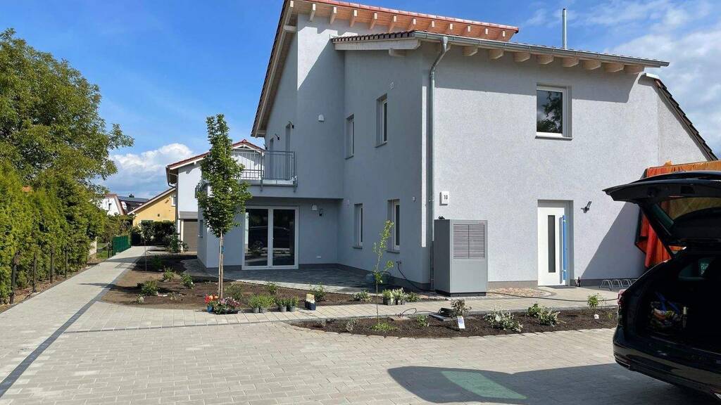 Auf dem Grundstück wurden 2 neue Zweifamilienhäuser gebaut mit je 2 Wohnungen. Die Wohnung befindet sich im 1.OG des vorderen Zweifamilienhauses. Es handelt sich hier um eine kleine Wohneinheit mit Grünflächen herum und Abstand zum Nachbarhaus.
