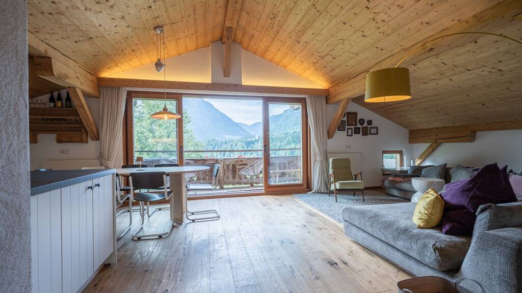 Diese helle, moderne Dachgeschosswohnung vereint Ruhe, Komfort und viel Tageslicht. Umgeben von Natur und Grün genießen Sie hier eine friedliche Atmosphäre, in der man richtig durchatmen kann. Gleichzeitig sind wichtige Ziele in wenigen Minuten mit dem Auto oder den öffentlichen Verkehrsmitteln erreichbar. Große Fenster lassen Sonne in jeden Raum, warme Materialien wie Altholz schaffen ein einladendes, gemütliches Wohnambiente. Eingebaute LED-Beleuchtung setzt dezent stimmungsvolle Akzente und unterstreicht die moderne Eleganz der Wohnung. Ob als dauerhafter Wohnsitz oder idyllischer Freizeitwohnsitz - hier verbinden sich Natur, Licht und Lebensqualität zu einem harmonischen Zuhause, in dem man sich sofort wohlfühlt