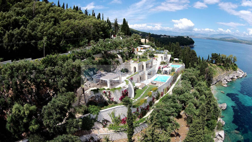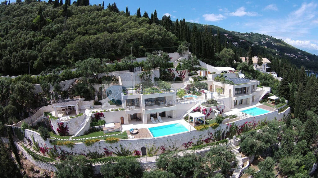 Eine ultimativ luxuriöse Mehrfamilienhausvilla mit 2 privaten Pools, die eine grandiose, Aussicht auf das Meer und den Bergen in der Nordöstlichen Region von Korfu bietet.