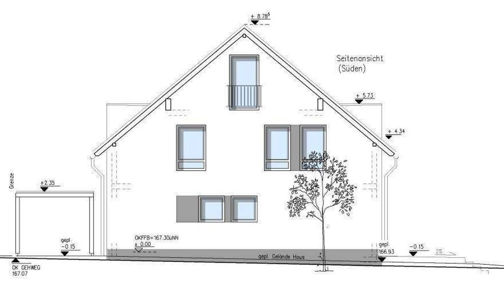 Ein Carport ist bereits genehmigt, mĂĽsste bei Bedarf jedoch vom Erwerber in Eigenleistung erstellt werden.