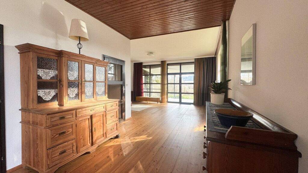 Im Mittelpunkt steht der Wohnraum mit ca. 42?m², ergänzt durch den angrenzenden Essbereich mit ca. 12?m². Die Raumhöhe von 3?Metern verleiht diesem Bereich ein angenehm offenes Raumgefühl, das den Wohnkomfort spürbar erhöht. Weiters befinden sich im Erdgeschoss die Küche mit praktischer Vorratskammer, ein zusätzliches Zimmer, ein Abstellraum, der Vorraum mit Garderobe, ein Badezimmer sowie ein separates WC. Vom Wohnbereich gelangt man direkt auf die Terrasse. Diese erweitert den Wohnraum nach draußen und ist der perfekte Ort für gesellige Abende im Freien oder einfach nur, um die Ruhe und Schönheit des Gartens zu genießen. Der Garten ist nach Süd-/Westen ausgerichtet und bietet daher den ganzen Tag über eine optimale Sonneneinstrahlung. Dies ist ideal für Gartenliebhaber und bietet die Möglichkeit, Sonnenbaden, Grillen oder Outdoor-Aktivitäten in vollen Zügen zu genießen. Ein Teil des Erdgeschosses kann bei Bedarf auch als separate Wohneinheit genutzt werden.
